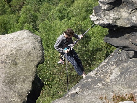 Mit Kindern ist ein Besuch des Felsenlabyrinths bei Langenhennersdorf ein gutes Ziel, schmale Klüfte, Leitern, Stufen.